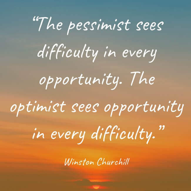- 1“The pessimist sees difficulty in every opportunity. The optimist sees opportunity in every difficulty.” - Winston Churchill